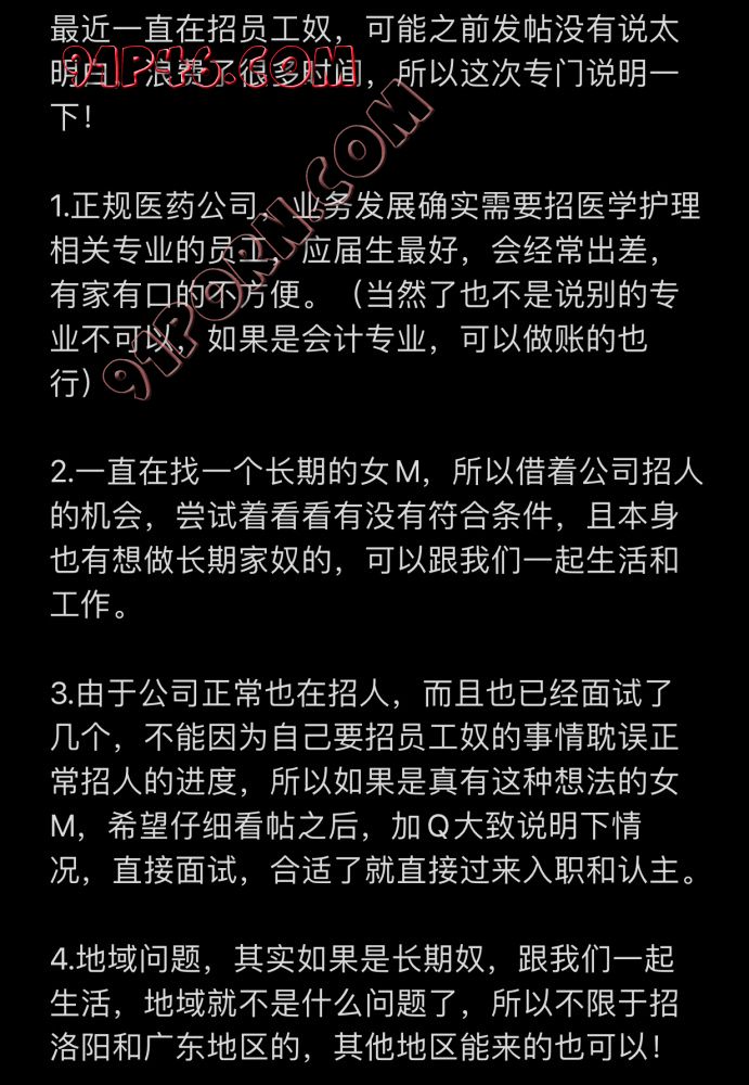 其实很多人对于这个招员工奴理解是有误解的,招员工是真的,招奴也是因为兴趣使然,两者能够相结合当然是最好,其实生活中爱好的人,没有找员工这个前提,一样还是会去找兴趣相同的人玩。现在只是把两件事情结合在了一起,怎么很多人就理解不了了呢?